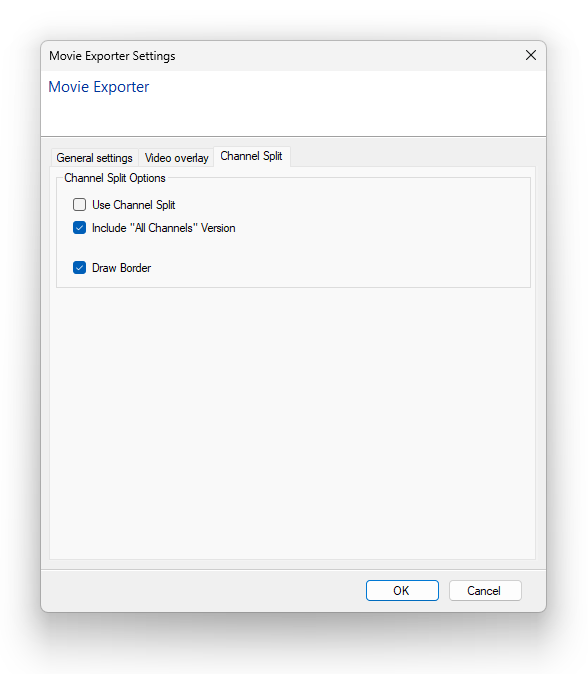 Finally, for multi-channel datasets, we have the choice of producing a movie with all channels overlaid on top of each other or side by side using the "Use Channel Split" option.